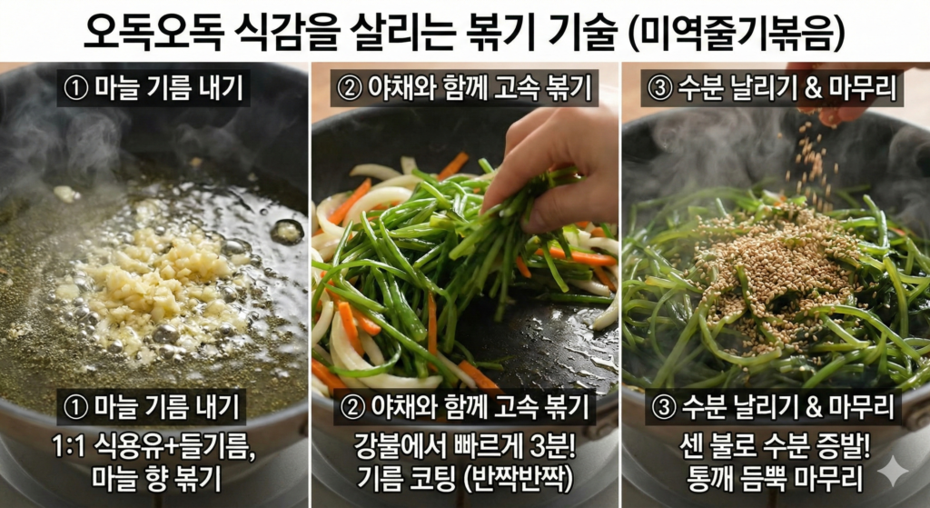 • 비린내가 심하다면?: 볶을 때 생강즙 한 두 방울을 넣거나, 들깨가루 1큰술을 추가해 보세요. 들깨의 구수한 향이 미역의 바다 냄새를 완벽하게 덮어줍니다.