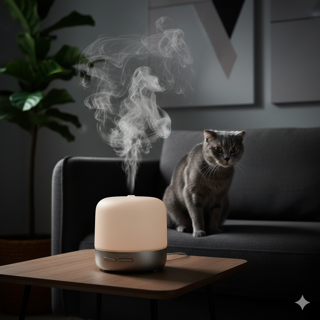 - 방향제 및 디퓨저: 많은 방향제에 포함된 ‘에센셜 오일’ 성분은 고양이에게 독성이 있습니다. 특히 티트리, 페퍼민트 오일은 매우 위험합니다.