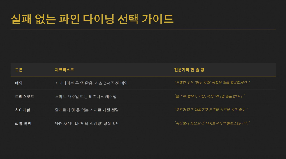 💡 전문가 가이드: 실패 없는 파인다이닝 선택 및 예약 팁