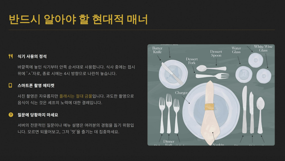 🍴 반드시 알아야 할 ‘현대적’ 파인다이닝 매너